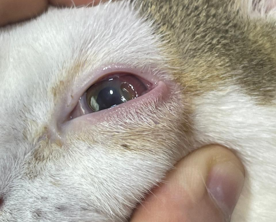 Over time, the eye appeared cloudy, and the cat became sensitive to light and eyes were closed almost all the time