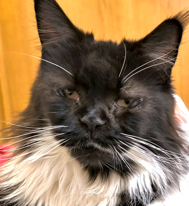 A 4-year-old mainecoon cat was presented to the clinic with a chronic ocular discomfort, excessive discharging