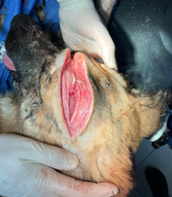 A 1 years old German shepherd dog presented for two deep cut wounds caused by